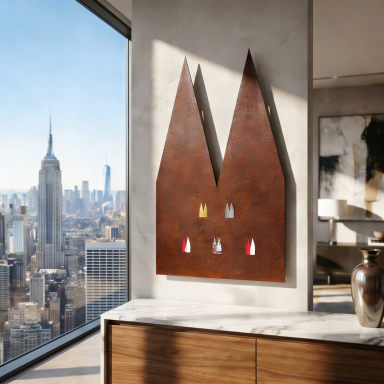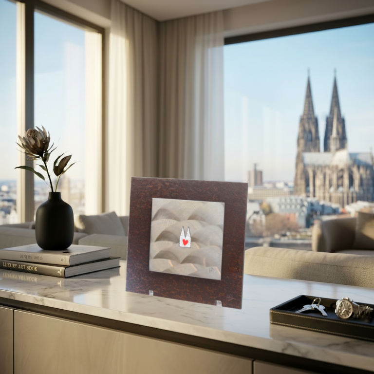 Ob Rostoptik oder Hochglanzschliff – die Ausschnitte werden mit den Motiv-Einsätzen gefüllt, und magnetisch gehalten. Die Einsätze sind in einer vielfältigen Auswahl an Fertigungstechniken und Preislagen seperat erhätlich. Finden Sie für jede Idee und jeden Anspruch das passende Element. Stellen Sie sich Ihr persönliches "Köln-Bild" aus unserer Kollektion zusammen. Als ausdrucksstarkes Statement für Ihre Wand oder als besonderes Geschenk für einen Herzensmenschen.