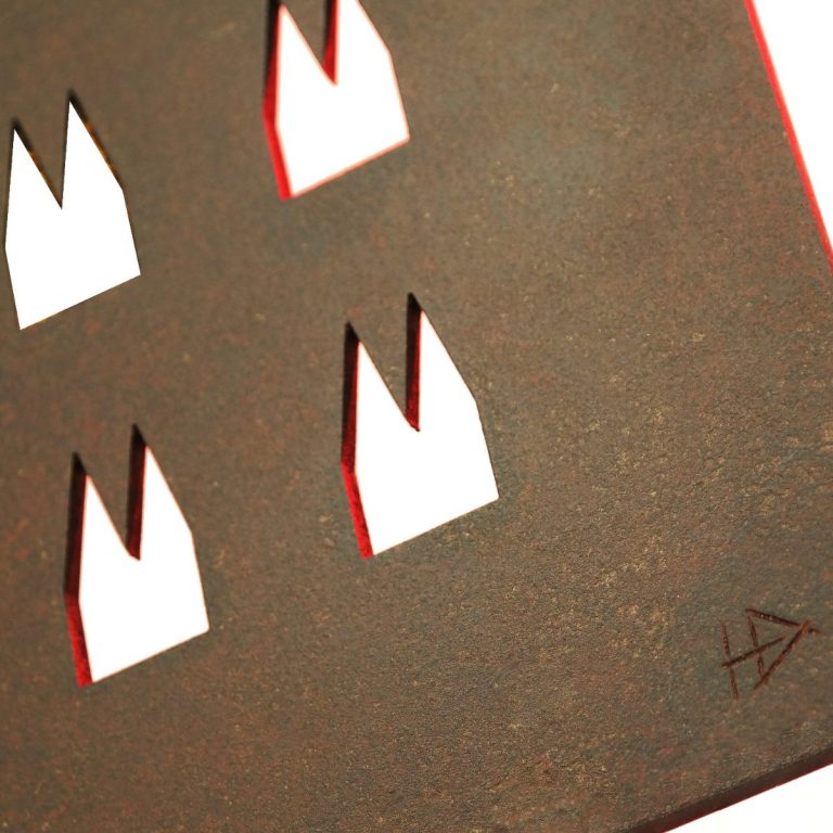 Die Dom Platte entsteht durch präzise Lasertechnik und feiner Handwerkskunst. Durch die individuelle Oberflächenbehandlung unterscheidet sich jede Platte und wird zum Unikat. Es gibt den klassischen Rostlook sowie den Kreuzschliff und wellenförmigen Rheinschliff in Hochglanzoptik. Die Motiv Einsätze können innerhalb der Platten versetzt bzw.getauscht werde.